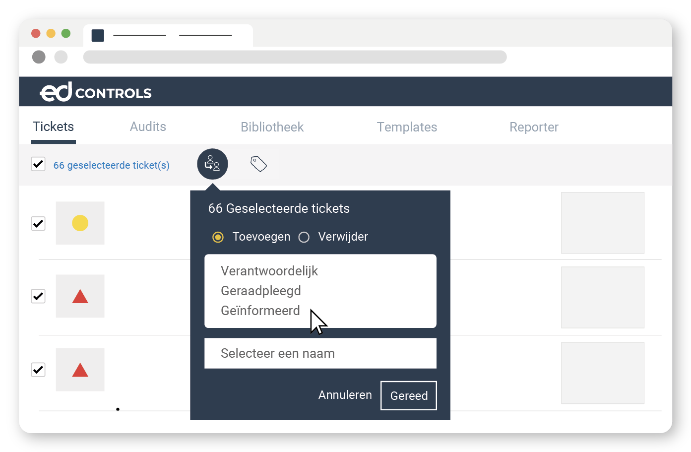 Whereas it was previously possible to add a Responsible in one go to all or a large amount of Tickets, team Ed Controls has now made it possible to additionally perform other actions in "bulk". This makes Ed Controls even easier to use.