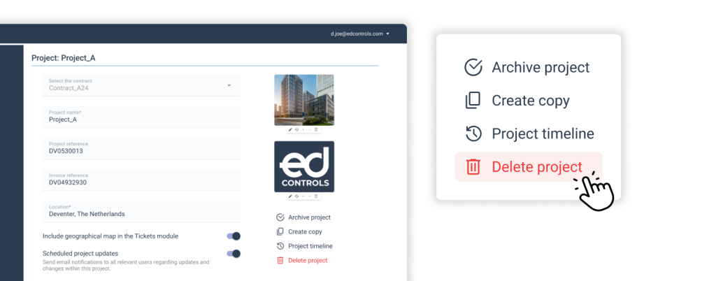 We're introducing two new features that give you more control over your projects and data. First, as an admin, you can now delete inactive projects whose data is no longer needed. This ensures a tidy work environment and prevents old data from remaining unnecessarily accessible. This option is only available to admins of a contract. This keeps your dashboard clear, improves data security and allows you to focus more efficiently on active projects.