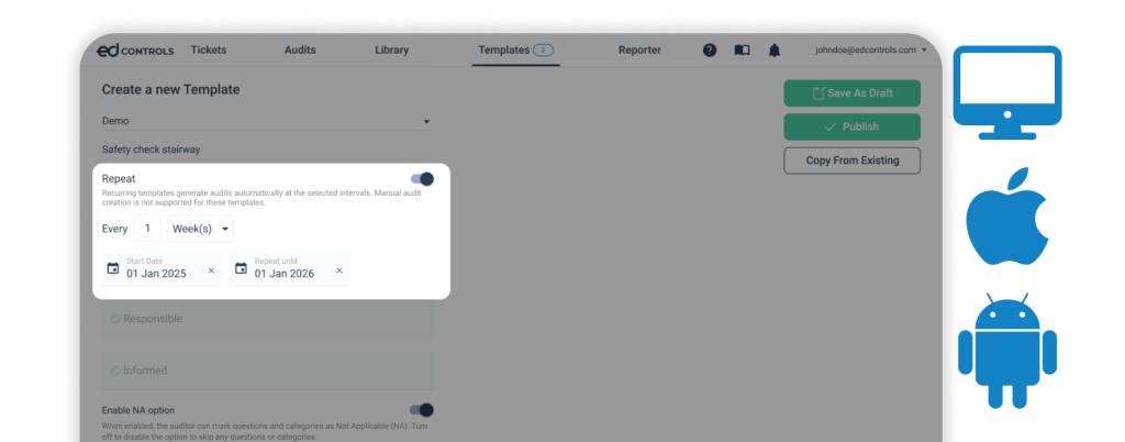 Efficient audit management is crucial for project managers, and Ed Controls' new recurring audits feature makes this process much easier. You can now have audits automatically repeated on a set schedule, allowing you to focus on other important tasks while the system handles routine audits.